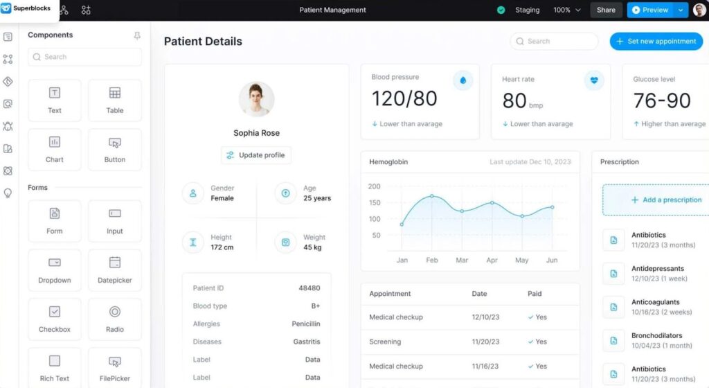 Easy Drag-and-Drop Builder: Superblocks lets you create applications simply by dragging and dropping elements like tables, charts, forms, and grids onto a workspace. No complicated coding needed!