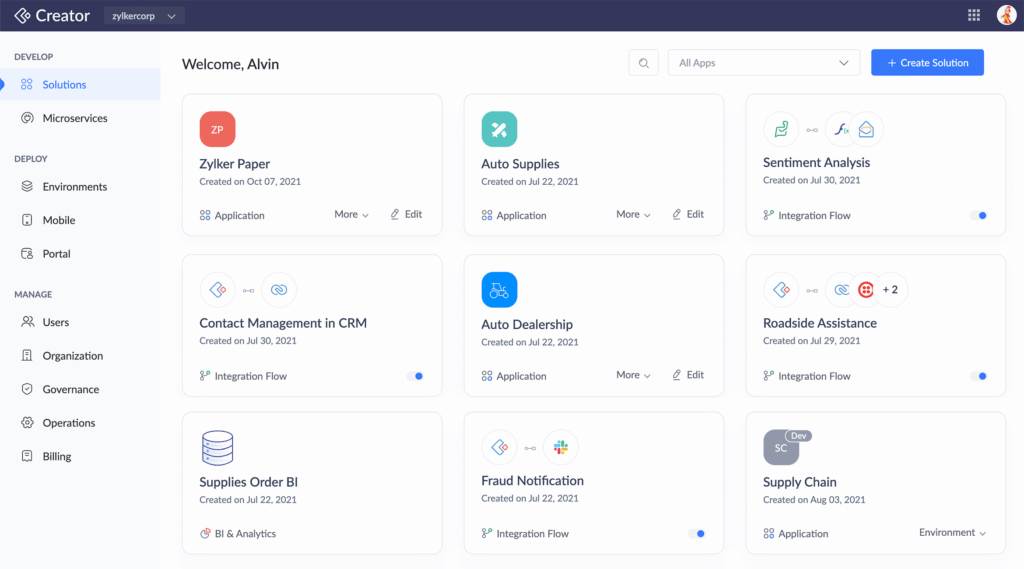 With built-in artificial intelligence, Zoho Creator offers a drag-and-drop interface, making app development quick and easy. Whether you’re looking to develop a complete system for managing a school or a detailed dashboard for tracking logistics, Zoho Creator gives you the flexibility to build solutions that fit your needs, no matter the scale. Its ability to handle many different types of projects makes it a great choice for businesses of all kinds.